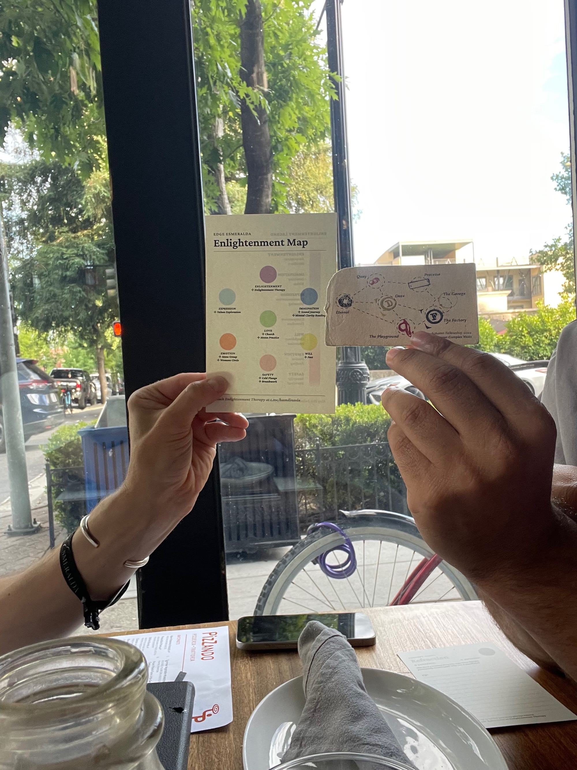 Outside of our clinic, Edge Esmeralda was a lot of fun. It was successful at curating very interesting and highly talented people, from computer chip printers to nuclear fusion experts to cryptography researchers. I really appreciated the efforts the Edge City team made to integrate into the local city through food and programming. Vivek Singh’s augmented locality project was particularly great at deepening participants’ relationship to the local space, and we were proud that a bunch of Healdsburg residents visited our various clinical interventions.